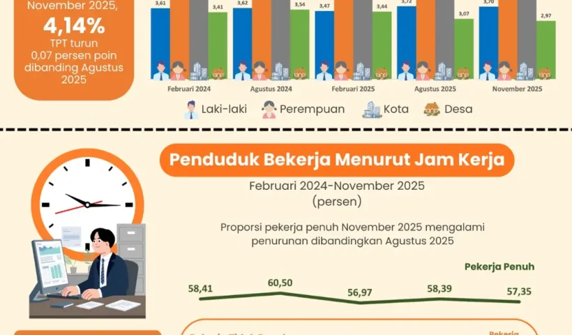 NOMICS.ID – Data terbaru Survei Angkatan Kerja Nasional (Sakernas) menunjukkan perbaikan moderat di pasar tenaga kerja Indonesia pada November 2025, dengan tingkat pengangguran terbuka (TPT)…