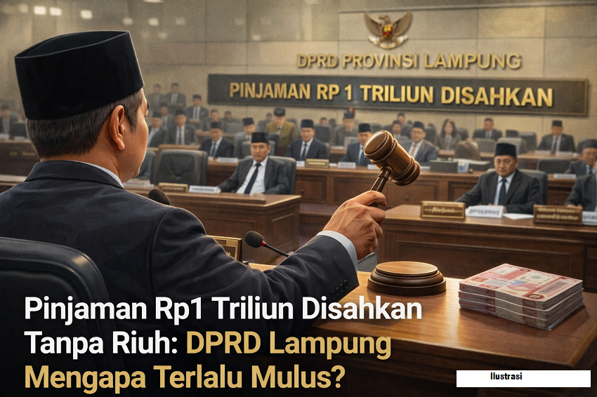 Keputusan besar lahir tanpa suara keras. Pemerintah Provinsi Lampung bersama DPRD secara resmi menyetujui rencana pinjaman daerah sebesar Rp1 triliun dalam pembahasan APBD 2026. Tak ada perdebatan panjang, tak pula resistensi berarti di ruang paripurna. Persetujuan itu meluncur nyaris tanpa riuh, meninggalkan pertanyaan publik, mengapa prosesnya terasa begitu mulus?