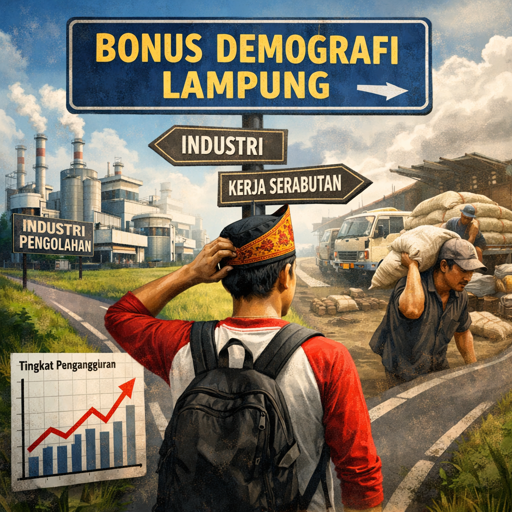 Data menunjukkan masalahnya bukan pada jumlah penduduk usia kerja, melainkan pada ketiadaan strategi ekonomi daerah yang mampu mengubah tenaga kerja menjadi kekuatan produktif. Tanpa perubahan arah kebijakan, Lampung berisiko mencatat sejarah pahit. Memiliki bonus demografi besar, tetapi gagal mengubahnya menjadi kesejahteraan.