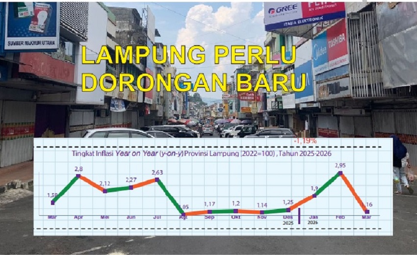 BANDAR LAMPUNG – Inflasi Lampung pada Maret 2026 tercatat hanya 1,16 persen secara tahunan (year on year). Angka ini sekilas terlihat menenangkan. Harga-harga relatif terkendali, tekanan inflasi tidak tinggi. Namun inflasi yang terlalu rendah, terutama bila dibandingkan dengan Maret 2025 yang mencapai 1,58 persen, bukanlah mencerminkan ekonomi yang kuat, melainkan memberi sinyal bahwa daya beli masyarakat sedang melemah dan aktivitas sektor riil kehilangan tenaga dorong.