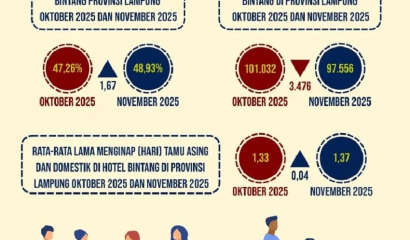 LAMPUNG – Pariwisata Lampung menunjukkan sinyal positif pada November 2025. Tingkat Penghunian Kamar (TPK) hotel berbintang naik menjadi 48,93 persen, naik tipis 1,67 poin dibanding…